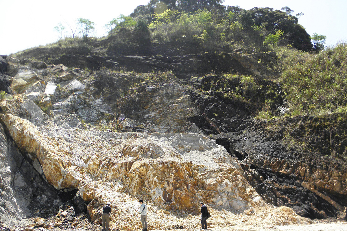 【天草陶石】天草陶石は熊本県天草下島の西海岸に産出する陶磁器用原料で、これまでに200 万トン以上が採掘された。鉱床は幅5~10m、延長4~5km のほぼ直立した岩脈状で、わが国最大の陶石鉱床である(図1)。陶石を構成する鉱物は、石英・セリサイト・カオリナイト・Na長石・菱鉄鉱・方解石などである。